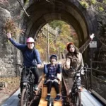東吾妻町では、八ッ場ダム建設に伴い付け替えとなった線路の一部を活用し、誰でも気軽に吾妻峡及び八ッ場ダム周辺観光を楽しめるように、自転車型トロッコ(愛称:吾妻峡レールバイク アガッタン)の運行を開始しました。